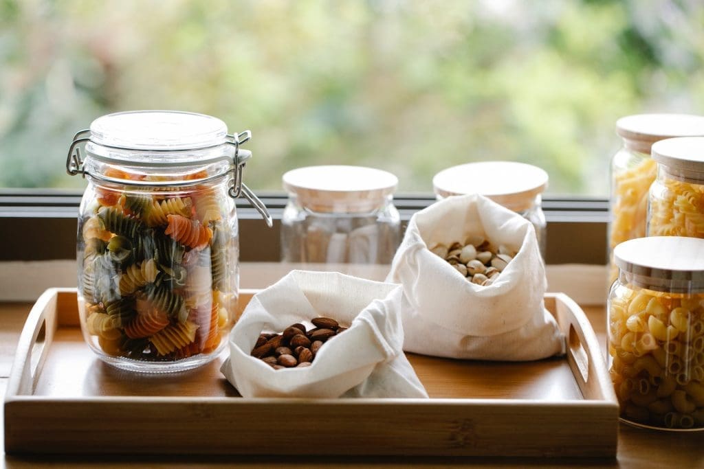Being mindful of waste in your kitchen is a simple but effective adjustment. Buy your produce at the local farmers’ market or grow your own vegetables if you have the space and time. Choose bulk bins over packaged food items such as nuts, seeds, cereal and pastas, and bring your own cotton bags, resealable jars and airtight food containers when you go grocery shopping and use them for goods that would otherwise be wrapped in plastic or paper.