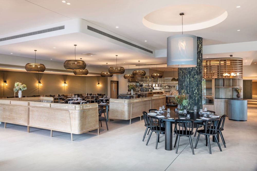 The restaurant also features a live kitchen presiding over the space with a marble seating area for diners to witness the culinary action behind the scenes. There is also a fully visible charcuterie locker paired with an impeccably curated wine area, boasting local and national wines to complete the fine dining experience. For those wishing to dine out in the fresh air, the restaurant opens out into an alfresco dining area made cosy for the chillier months with an open fireplace and louvred shelter overhead for additional comfort.