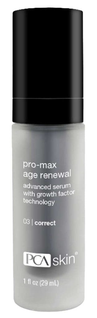 Using groundbreaking growth factor and neuropeptide technologies, PCA Skin Pro-Max Age Renewal Serum, $538, is a remarkable anti-aging solution that lifts sagging skin and reduces deep wrinkles.