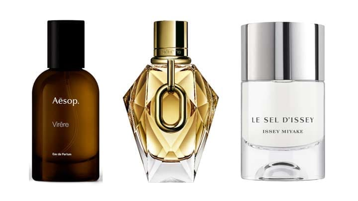 A floral woody musk with fierce potency, Paco Rabanne Million Gold For Her, EDP, 90ml, $ , is a classic feminine fragrance that starts with sweet top notes, opening into a heart of jasmine, ylang-ylang and rose. A spicy green fragrance that caters to all genders, Aēsop Virēre, EDP, 50ml, $220, is a herbaceous scent that relaxes the mind. Fresh and saline, Issey Miyake Le Sel D’Issey, EDT, 50ml, $129, is a masculine fragrance that captures the essence of the ocean.