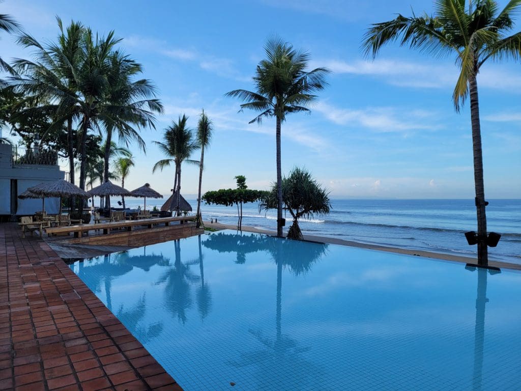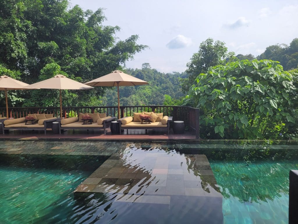 Not only is this stunning luxury resort surrounded by the Balinese rainforest, with the wonderful sights and sounds you can expect from being in the jungle of Ubud, but it also has a most spectacular double infinity pool. Each of the 44 exclusive private villas at this upscale jungle resort also has its own swimming pool and getting up out of bed at 5.00am for a soak and seeing the sunrise was an unforgettable experience. This would only be topped later that morning by a 90-minute bliss massage in the resort’s award-winning spa.
