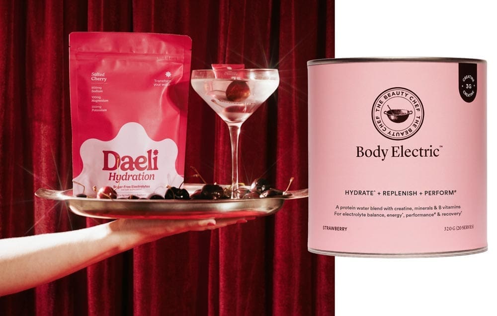 The new wellness standard is in high-performance hydration that works as hard as you do. Recharge your cellular battery with The Beauty Chef Body Electric, $65; an intelligent protein water that stacks creatine and electrolytes with activated B vitamins to fuel both mental stamina and physical recovery. For an instant mineral reset, Daeli Hydration Salted Cherry, $64.95, uses New Zealand sea salt and a potent electrolyte blend to transform your water into a sophisticated, sugar-free ritual.