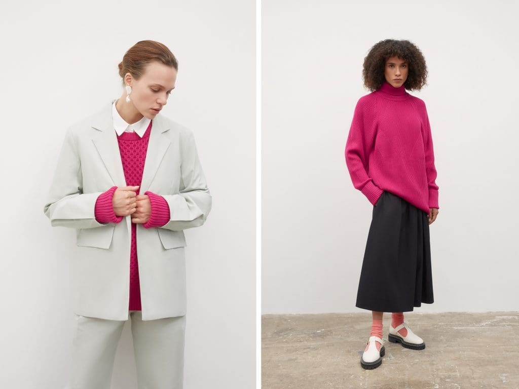 Turning their back on all fibres except Fairtrade certified organic cotton, the collection explores its versatility in a range featuring knitwear, frills and quilted coats.