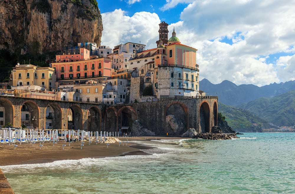 Despite the acute angles of the cliffs here, there are still beaches in Positano and a lively culture to match. The weather here is Mediterranean too so bring your bikinis and plenty to drink. Spiaggia Grande is the coast’s largest and liveliest beach, complete with striped umbrellas, seafood trattorias, and – unfortunately – Instagrammers. But, if you want to avoid being in the background of someone else’s post you can always head over the Arienzo Beach for a quieter, more bohemian vibe.