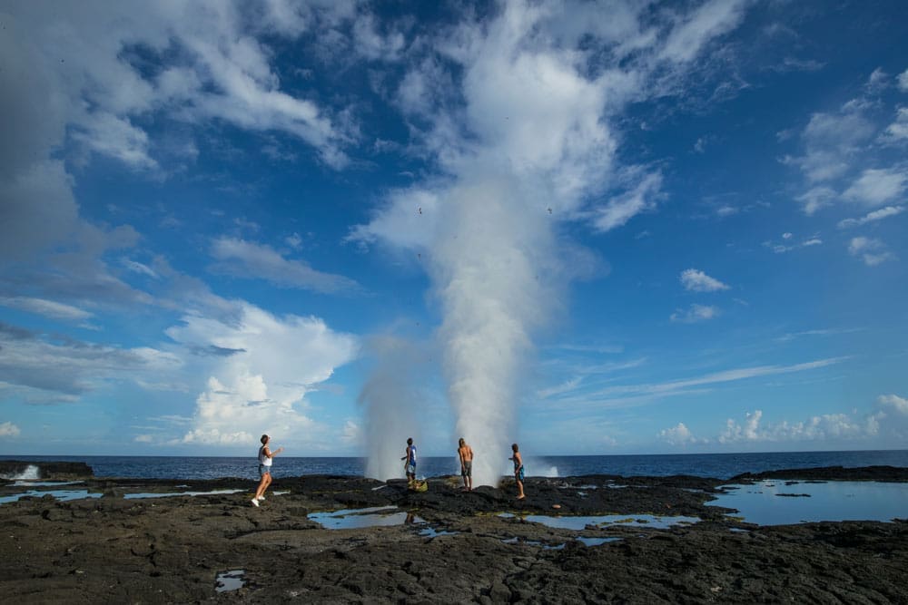 The volcanic rock is also responsible for several other otherworldly landscapes around the islands, like the Alofaaga Blowholes, where ocean waves blast through lava tubes, creating geyser-like sprays that shoot high into the air.