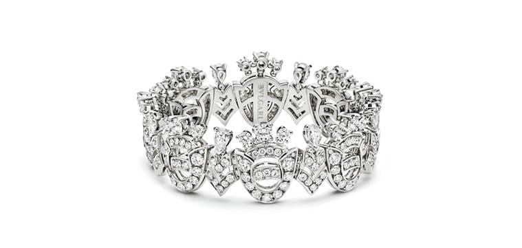 High Jewellery bracelet in platinum with 8 pear diamonds (2.41 ct), 8 round brilliant cut diamonds (1.96 ct) and pavé-set diamonds (9.51 ct)