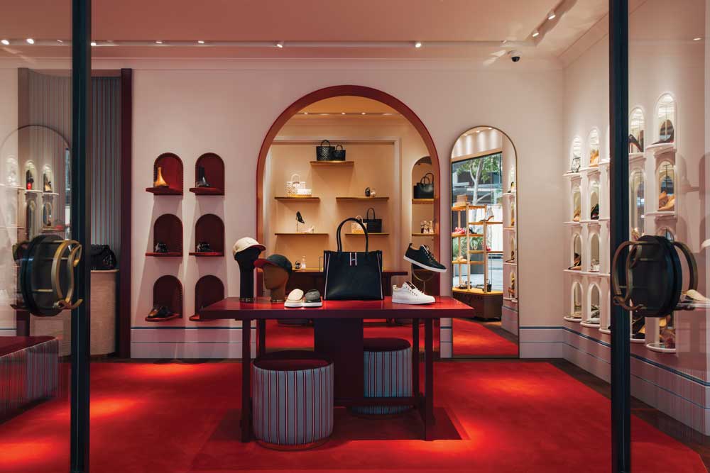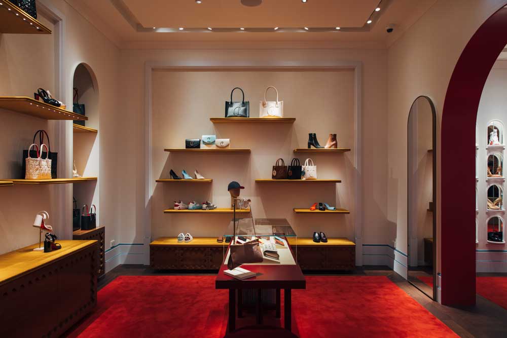 Good news for Auckland’s Queen Street as it welcomes a brand new luxury boutique near the waterfront. Christian Louboutin has quite literally set up shop in a 90-square-metre boutique located at the entrance of Queens Arcade. You cannot miss it with it’s bright red scale tile façade and blue ceramics. The inside is modeled on the designers personal haven, and has a cozy warmth about it. It’s more like a villa than a store. It’s broken into two sections, one styled after a daytime lounge and the other an evening living room. The lounge is adorned with the Maison’s signature red carpet and throughout are items showcasing a selection of both men’s and women’s styles. The collection stretches across shoes, leather goods, and accessories. The second room has a presentation focal point of the designers most iconic pieces with the space complimented by a striking red sofa. Low walnut wood cabinets around the room present what the luxury brand has to offer.