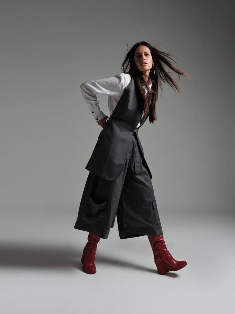 Visually, Lacuna moves in a restrained register. A tonal palette of charcoal, pewter and deep espresso, holds shadow and depth. Jackets curve and withdraw from the body, skirts fall on the diagonal, and proportions shift with subtle intention. Familiar tailoring details appear in the unexpected – a hemline recalling a waistband in the Evert Skirt. Pockets drifting from their traditional place in the Ansta Pant. Each unlikely coincidence is considered.