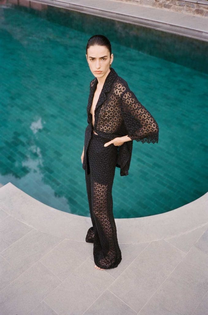 Craftsmanship is also key in their lineup. The Alabaster dress and top are hand-crocheted and beaded, mimicking the luminescence of moth wings with a touch of artisanal flair. A sheer gold lace artfully wraps the body, aiming to celebrate and ‘honour’ the female form. The Athalia range showcases a velvet texture that’s supposed to echo the fur of moth wings, each piece designed to accentuate individuality and personal growth, embodying empowerment through embracing change. And sometimes by the way, sitting by the pool drinking a cocktail while looking the part is a very important part of personal evolution.