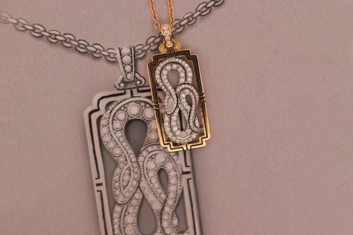 The Yellow Gold and Platinum Snake Pendant, is a piece so intricately designed it’s almost hypnotic. With 105 diamonds in its creation, this pendant isn’t for subtle types—it’s for those who want to light up a room.