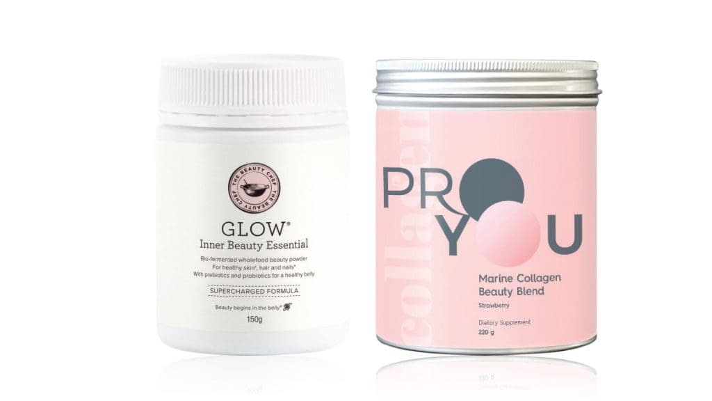 Focusing on the gut-skin connection, The Beauty Chef provides 24 bio-fermented probiotic superfoods in GLOW Inner Beauty Essentials, $75, which brings balance to our inner, and ultimately, outer health. To support your skin at a cellular level, ProYou Marine Collagen Beauty Blend, $99, harnesses the power of carotenoid Astaxanthin to give you an extra boost when it comes to internal UV protection and increased elasticity.