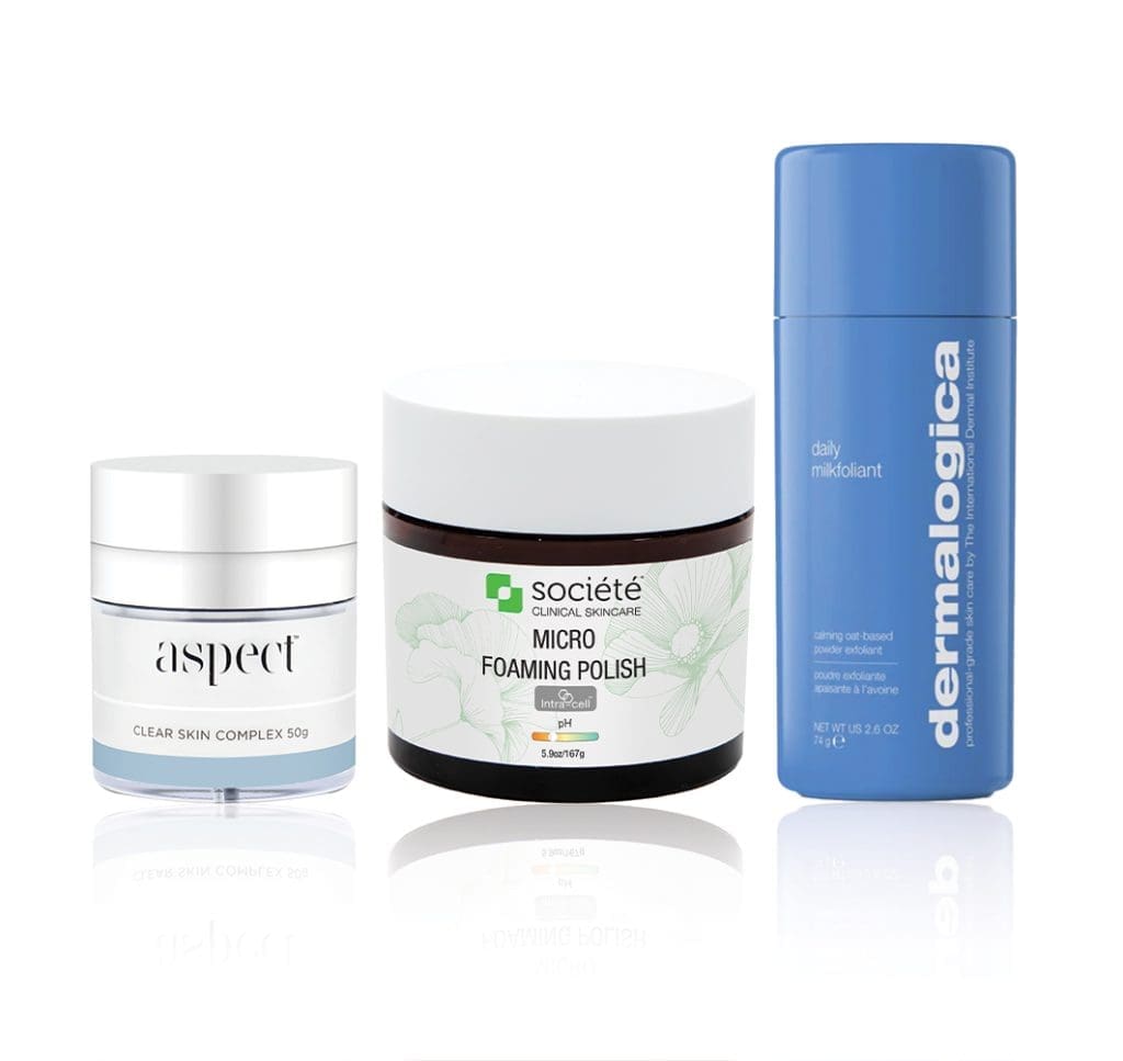 Even if you’ve achieved flawless skin through years of skin therapy, no one can fight the inescapable destiny of maskne. Serving the latest in pore-cleansing products, Aspect Clear Skin Complex, $140, has launched a cutting-edge gel-cream that allows AHAs to work harder while the addition of glycerin maintains hydration. Société Clinical Skincare Micro Foaming Polish, $94, is a satisfying exfoliating scrub that you work on dry skin to instantly improve skin clarity, brightness and texture. For a mild and calming formula, Dermalogica Daily Milkfoliant, $119, uses soothing ingredients such as coconut milk and oat bran extract, so you never overdo it.