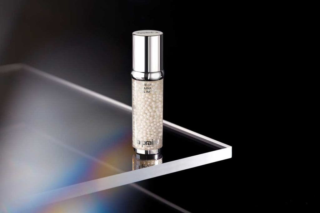 Formulated with golden caviar extract and La Prairie’s exclusive Cellular Complex, the new White Caviar Illuminating Pearl Infusion, $1,020, recaptures the luminosity and elasticity of youth. An anti-pollution matrix prevents greyness while vitamin C brightens the appearance of pigmentation and age spots.