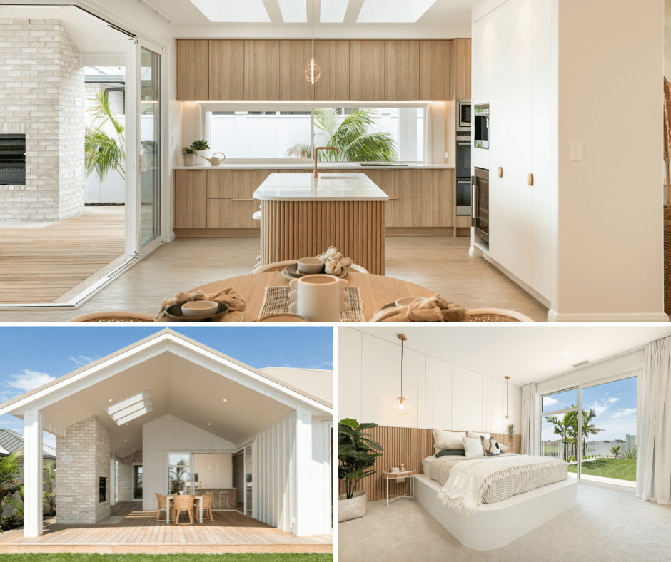 If you’re seeking the warm summery vibes then look no further than the Desert Romance showhome from GJ’s Tauranga. The tranquil and relaxing feel of the desert can be felt from the moment you step into this home. The home’s light washed exterior featuring plenty of palm trees transports you to Palm Springs. Whilst the home’s light interior showcases touches of gold, and natural wood tones to create a warm summery glow throughout. Aptly called ‘Desert Romance’, this home was meticulously designed to bring the romantic and inviting feel of Palm Springs to Tauranga.