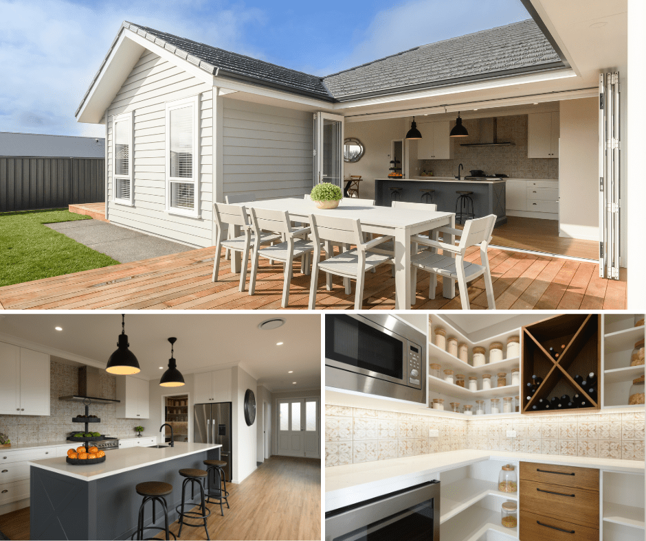 The home’s modern country style has a touch of colour throughout to bring in the bright summery feel. Based off our Adlington design, this home has summer living in mind with great indoor-outdoor flow from the home’s central kitchen. Large bifold doors open this space to the outdoor deck, making it great for summer BBQs or relaxing in the sun.