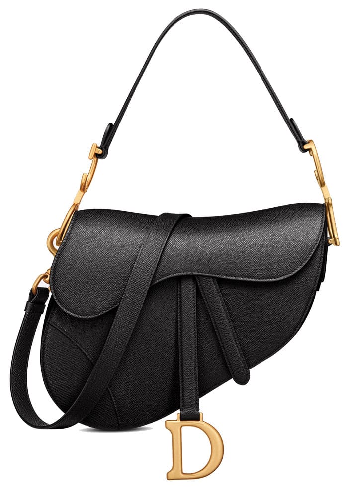Meanwhile, the Saddle Bag has been updated in black grained calfskin, maintaining its signature curved form but now with a slightly more structured look. Designed by John Galliano in 1999 and brought back in 2018, the Saddle Bag continues to evolve, with reinforced side stitching and a detachable strap.