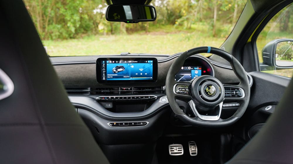 Three distinct driving modes (Turismo, Scorpion Street, Scorpion Track) allow you to dial the dynamics from cruiser to barnstormer at the flick of a knob. A synthesized engine note reminiscent of the 695 Abarth’s roaring exhaust can be enabled for a dose of nostalgia. The official 0 to 100 time is 7 seconds, but it’s not about that. In the middle of its range (city driving) it really stands out. Remember seven seconds isn’t too shabby, the early MX5s were praised when they had an 8-second sprint time!