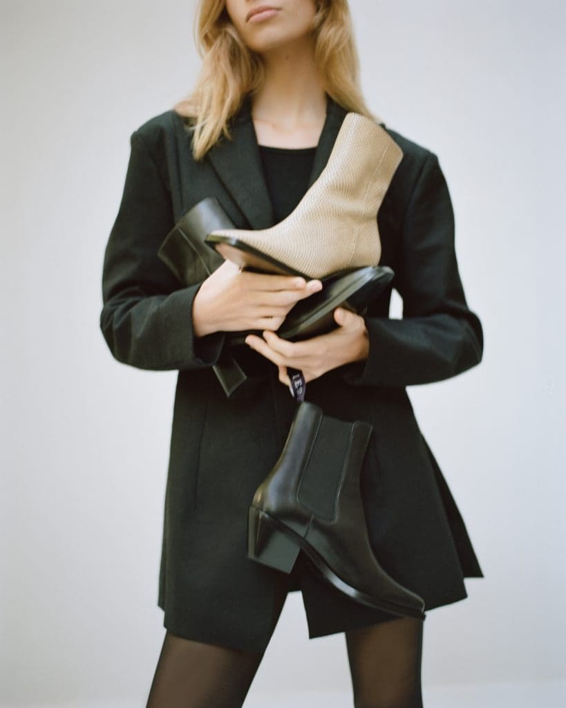 Coming in two classic styles, the footwear capsule features sustainably crafted pieces in supple lamb and calf leather in a range of selected colourways. Featuring the Rider boot, a take on the go-to Chelsea boot style with a subtle heel and pull-tab; and the Marengo, a square toe ankle boot with a slender yet solid heel and a brass zipper, the collection looks to introduce future classics, giving way to your new wardrobe staples.