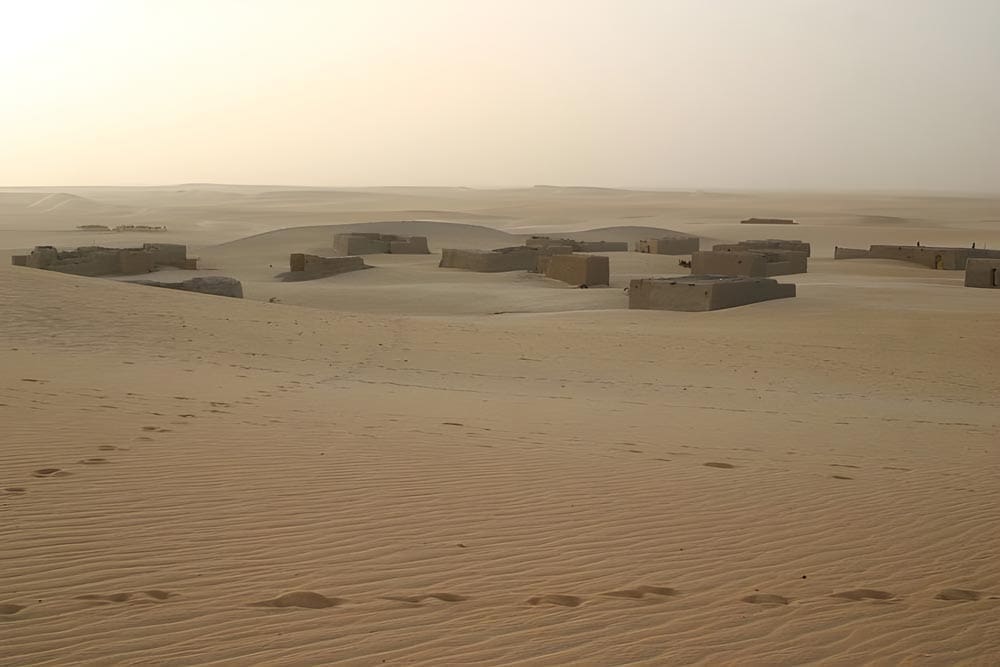 Saharan Sentinel: Most of the houses are built from salt blocks and earth, which are slowly being swallowed by the moving dunes.