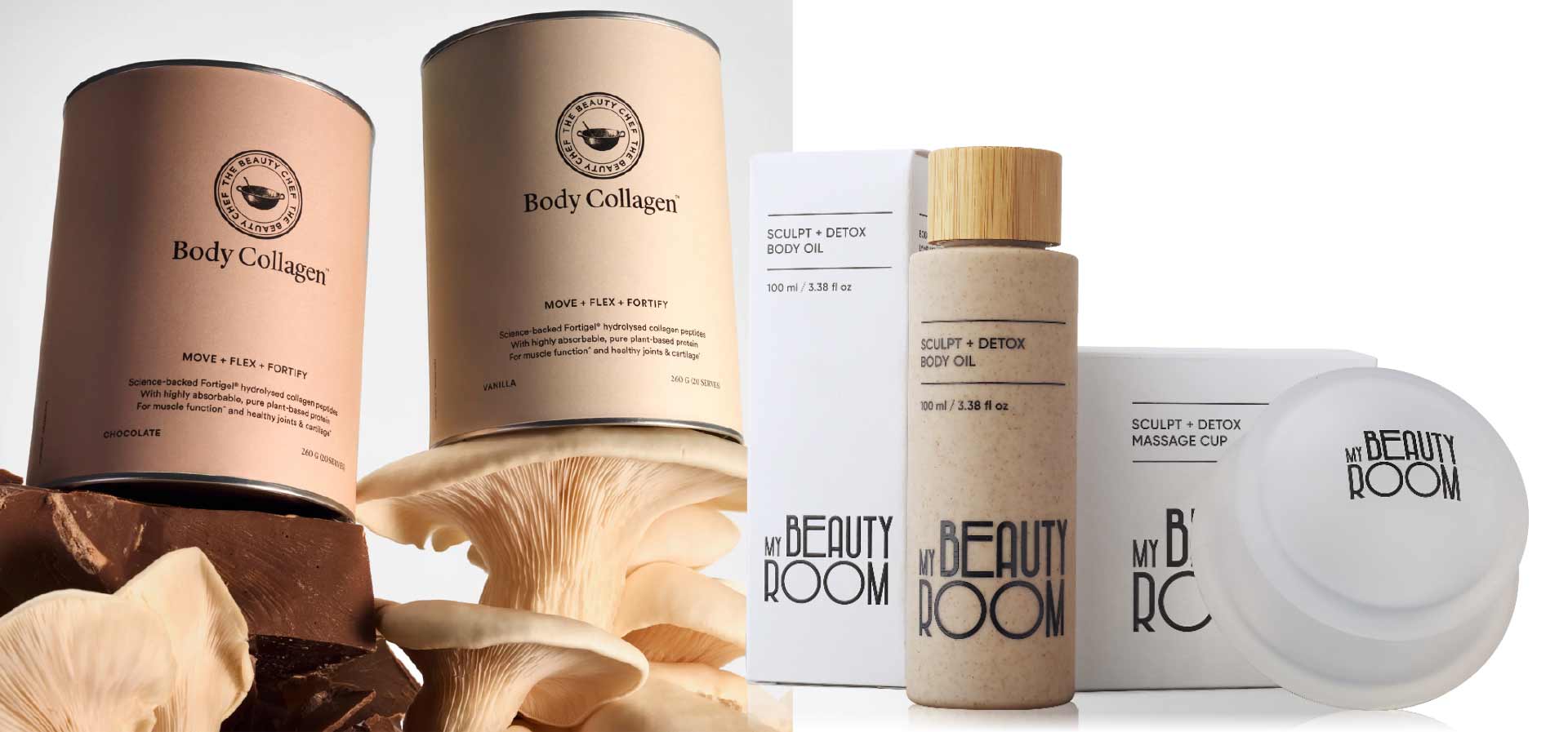Nourish the body from the inside out by integrating rituals that support both inner vitality and outer glow. An all-in-one complex with collagen, plant proteins, magnesium, vitamin C and D and hyaluronic acid, The Beauty Chef Body Collagen, $85, fortifies joint, muscle, skin and nerve health in one fell swoop. Practice at-home lymphatic drainage and body sculpting massage to release tight fascia and stimulate lymphatic flow with My Beauty Room Sculp + Detox Tool Kit, $99, the massage cup is paired with a coffee bean extract inclusive oil blend to firm the skin and slow down the development of fat cells.