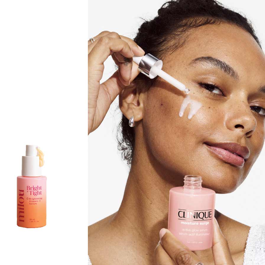 Revive your glow and reveal a radiant complexion by adding protection against spring’s strengthening rays. A lightweight, milky serum with lactic acid, vitamin C and hyaluronic acid, Clinique Moisture Surge Active Glow Serum, $85, exfoliates dead skin cells to reveal smooth skin. Using a stable form of vitamin C, sodium ascorbyl phosphate, together with kakadu plum and niacinamide, Milou Bright & Tight Brightening Vitamin C Serum, $69, plumps and brightens the skin and also prevents the growth of acne-causing bacteria to minimise the appearance of fine lines.