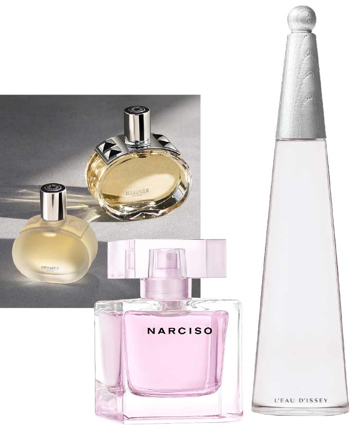 Like blossoms in bloom and air after rain, these spring scents carry a quiet radiance laced with modern synthetic notes. Emulating a moment of softness like the impressions on cotton, Narciso Rodriguez Radiante, EDP, 50ml, $197, is a fresh, luminous and green scent with notes of white aldehydes, clove blossom and orange flower, wrapped in clean musks, vetiver and cedar. For the chypre lover, Hermès Barénia Perfumed Hair Mist, $126, drapes a delicate veil of butterfly lily, patchouli and oakwood over the wearer like a halo. An intense floral-aquatic fragrance inspired by the underwater world, Issey Miyake L’Eau d’Issey, EDP Intense, $204, features the unique posidonia accord as an olfactive ode to the sea.