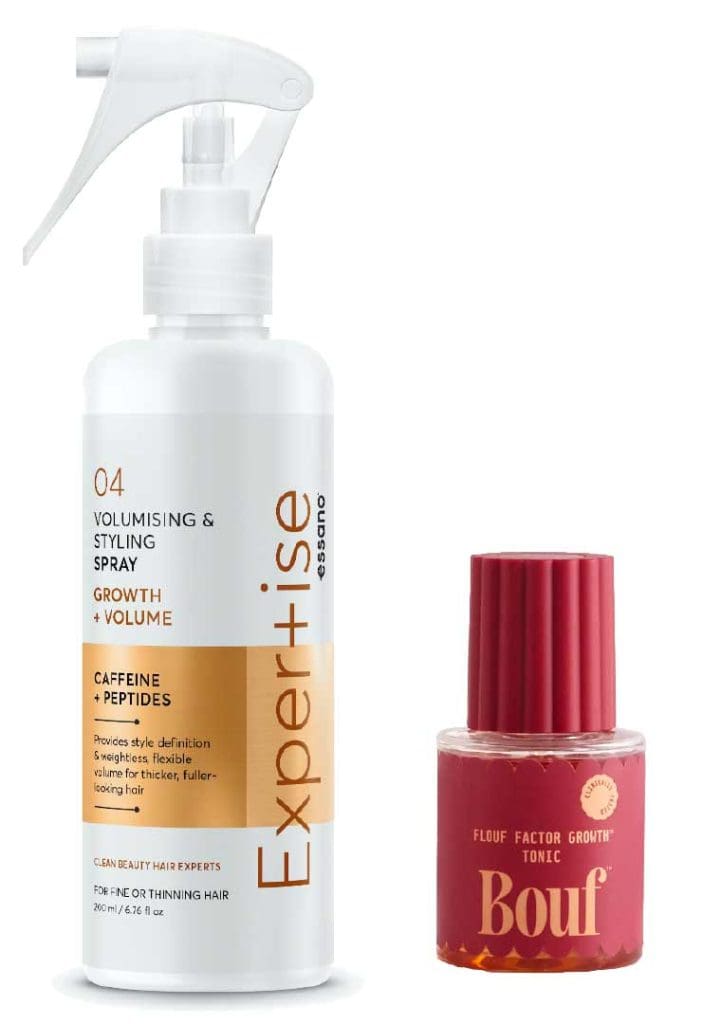 A third of women over 30 experience hair thinning in one form or another, often triggered by stress, hormonal shifts, or postpartum recovery. In a viral campaign fronted by mum-of-three and TikTok sensation Indy Clinton, who candidly documented her five-month hair transformation, Bouf Flouf Factor Growth Tonic, $39.95, struck a chord with women in Australia, flying off shelves at a rate of one bottle per minute. For a root-boosting styling solution, Essano Exper+ise Growth + Volume Volumising & Styling Spray, $25.99, is powered by caffeine to stimulate the scalp while delivering flexible lift, volume, and definition.