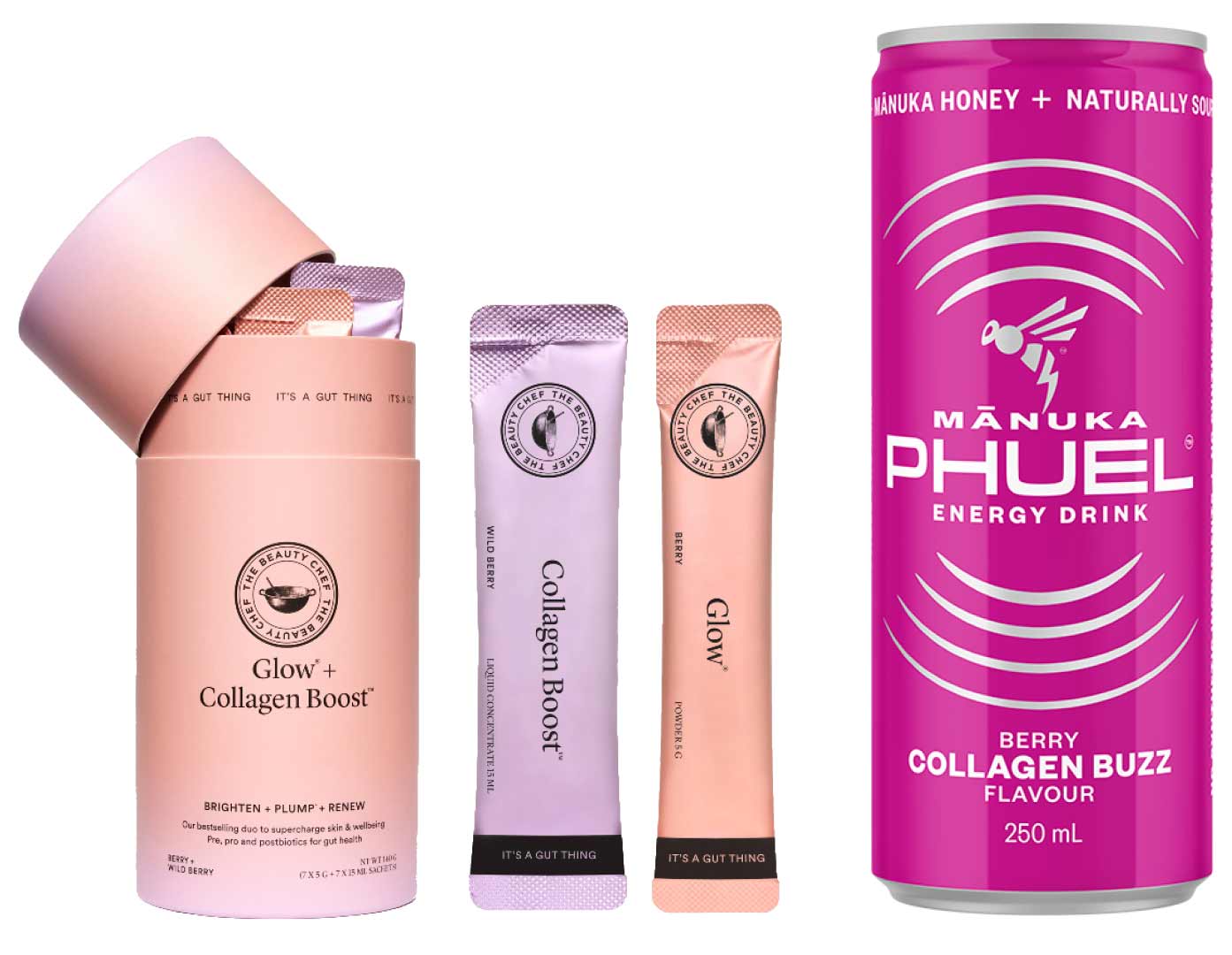 Even though TikTok romanticises slow mornings and 11am starts, the reality for most modern women is still deeply rooted in hustle culture – rushing from A to B while juggling work, pets, kids, and everything in between. Where time is tight and demands are high, the luxuries of convenience have turned into an everyday essential. The Beauty Chef have answered the call with two of their best-sellers, Glow and Collagen Boost, available in Sachets, $55, to supercharge your water with vitamin B and C, collagen, zinc and probiotics – all while on the go. Changing the energy game to provide clean energy, Manuka Phuel Collagen Buzz, $2.79, clean, sustained energy with a blend of caffeine, guarana, ginseng, manuka honey, and collagen—all packed into one sleek can.